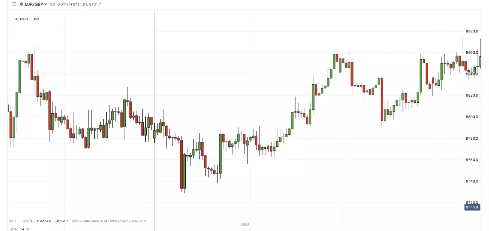 The average true range (ATR) is a forex indicator that measures market volatility. It shows how much a currency pair typically moves within a specific period. When the ATR value is high, it means the market is more volatile. A low ATR value indicates that the market is moving slowly and steadily.