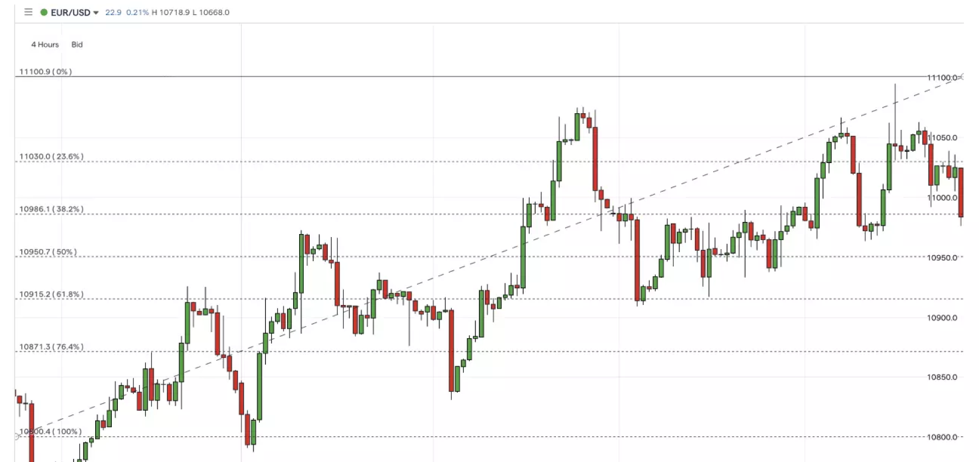 When the price retraces (pulls back) to one of these levels, it might bounce back and continue moving in the original direction. For example, if a currency pair is in an uptrend and retraces to the 61.8% level, traders might expect it to bounce back up. Similarly, in a downtrend, traders watch for price rebounds at these levels.